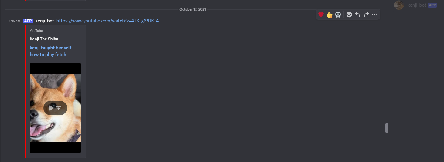 Notification bot to link the latest videos from Kenji the Shiba. Who doesn’t want cute shiba videos? Scrapes channel video tab with BeautifulSoup and parses for the newest video id.