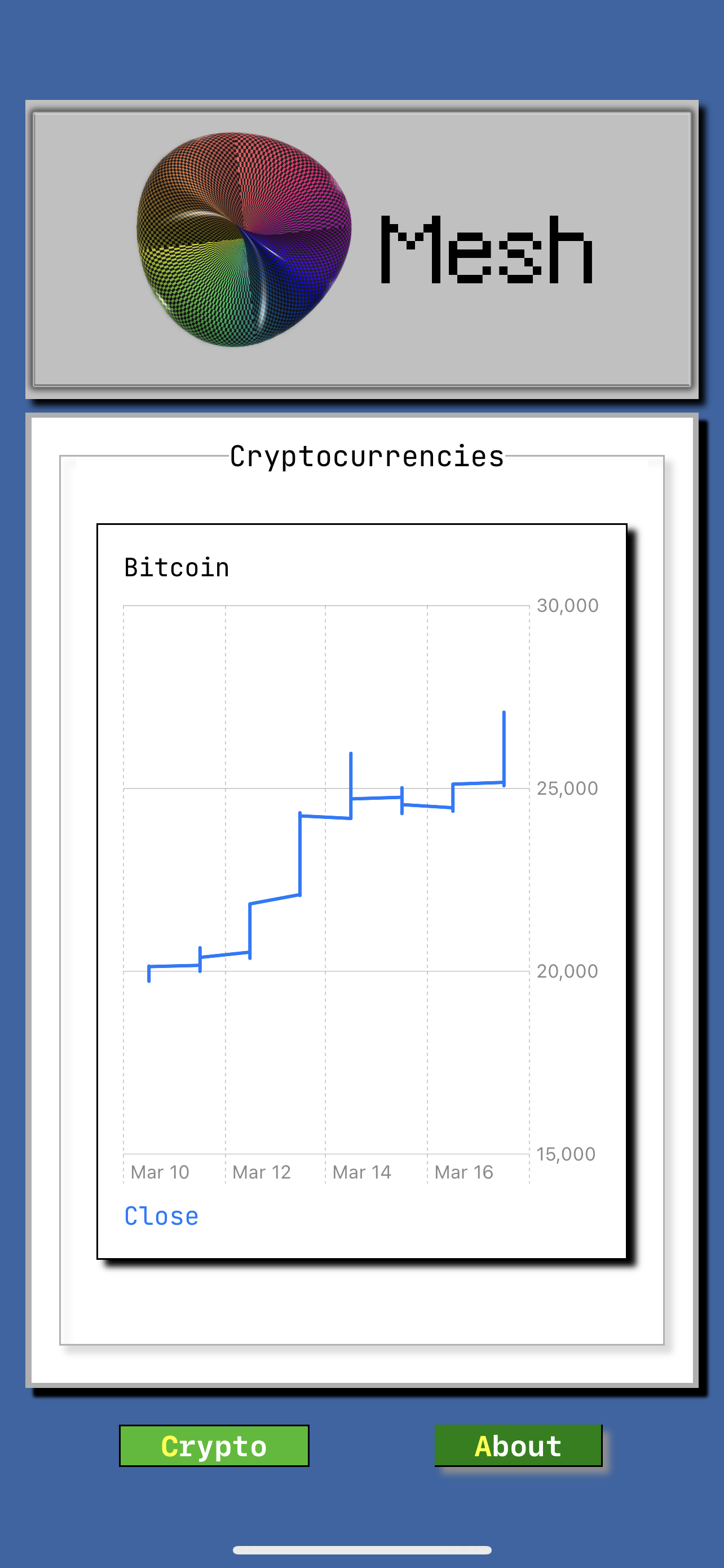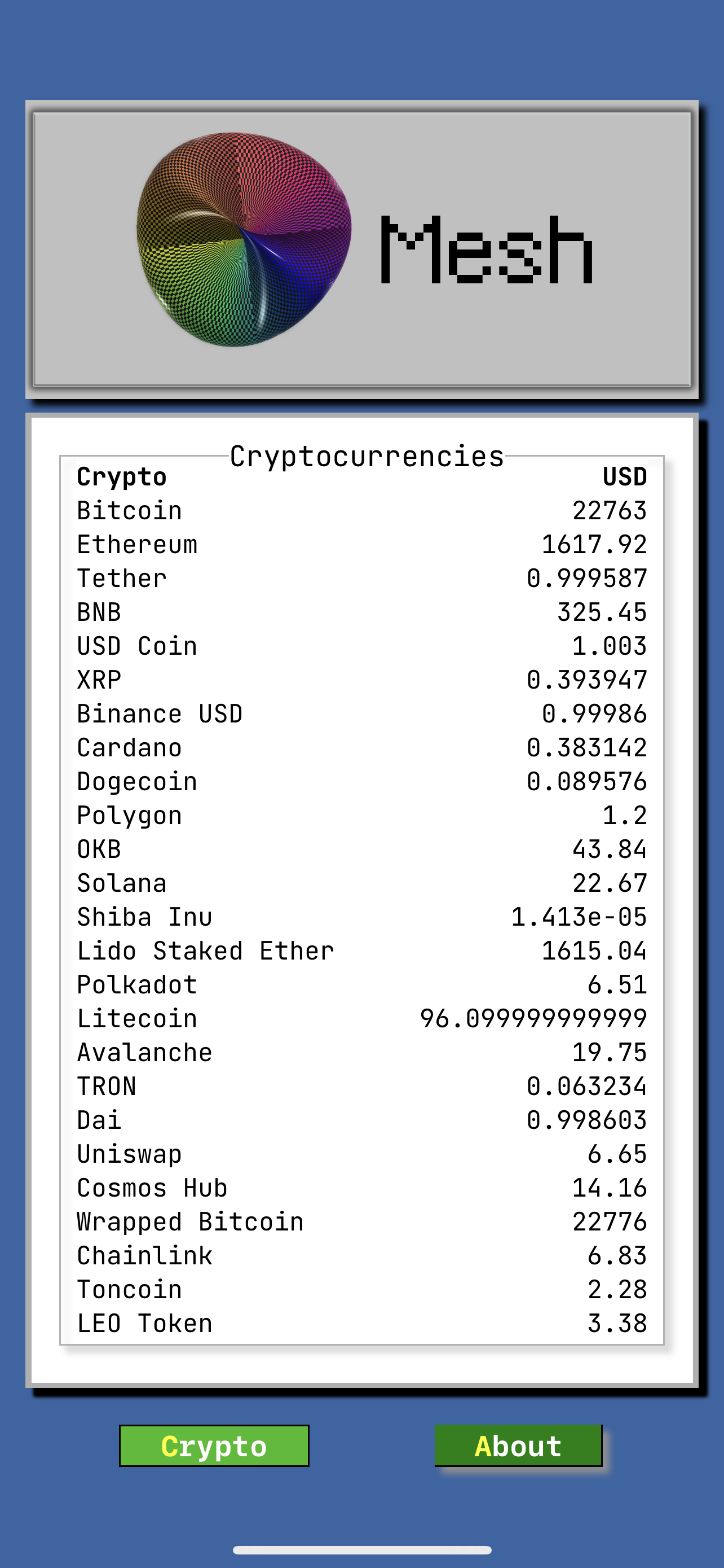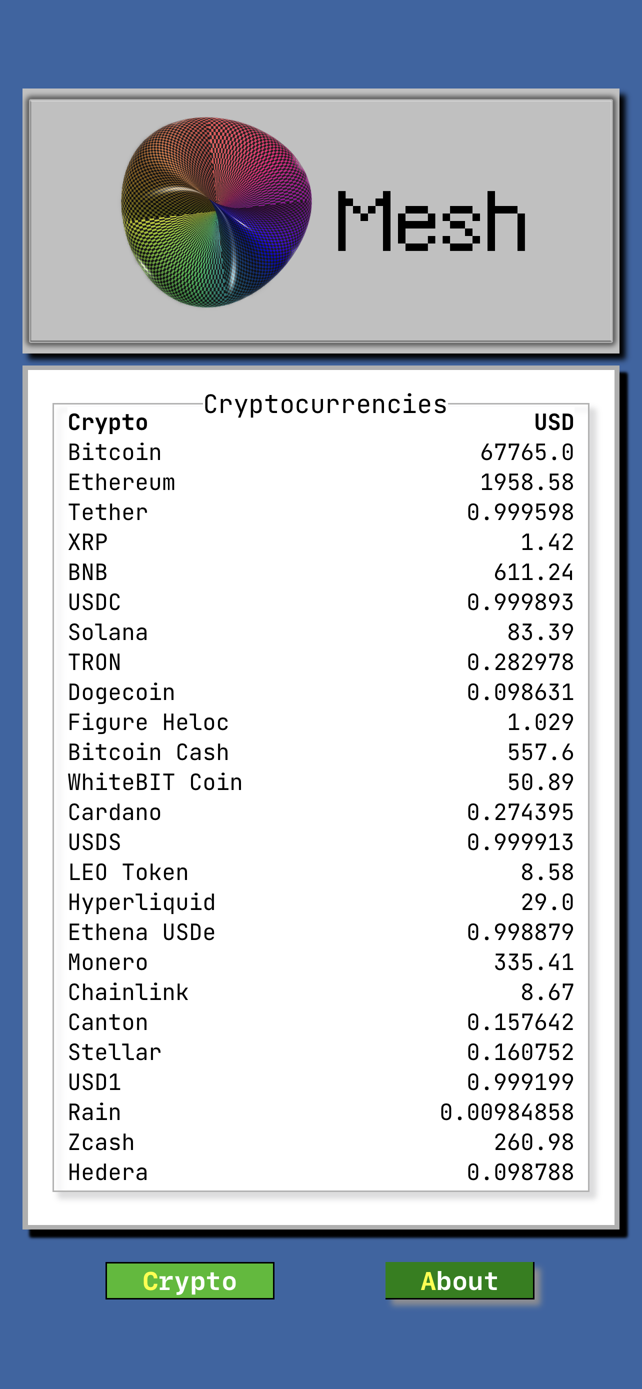 90s themed cryptocurrency ticker